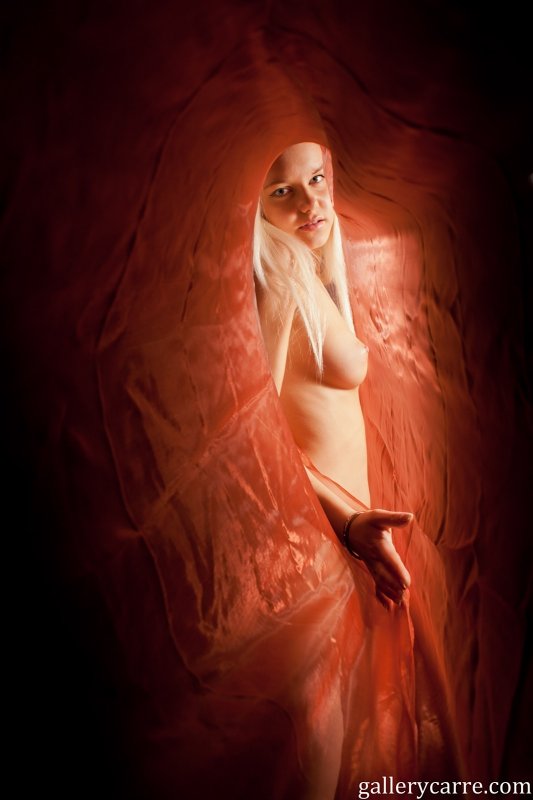 Расположившись под яркой тканью, молодая и полностью голая блондинка устраивает эротичную ню фото сессию, чередуя разные позиции и ощущая удовольствие. В процессе сексуальная девушка с натуральными сиськами показывала гладенькую бритую письку с лобком.