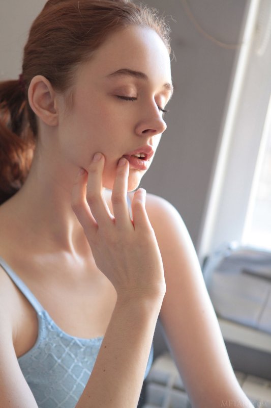 Очаровательная молодая шатенка с худенькой талией умело и максимально возбуждающе снимает длинное платье на кухне, располагаясь обнаженной на столе. Таким образом стройняшка с маленькой грудью продемонстрировала гладенький лобок с бритой писькой и плоский животик.