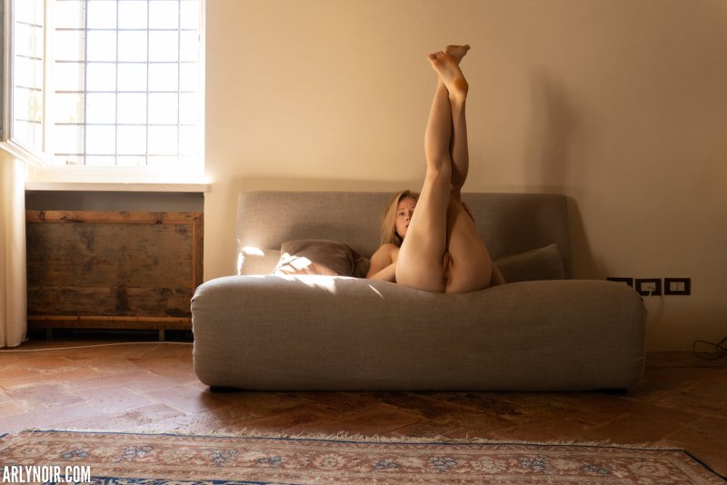 Начав эротично позировать дома на диване, а порой прогибаясь раком и на полу, привлекательная и полностью голая распутница с плоской грудью испытывала сильное удовольствие от всего с ней происходящего. Ничуть не смущаясь своего положения, блондинка позволила нам насладиться прелестными видами её красивой попки с аппетитными ягодицами, бритой киски и небольших титек.