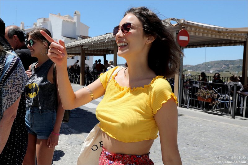 Прогуливаясь на улице жарким летним днем, молодая девушка с красивой накаченной жопой улыбаясь игриво поднимает короткую юбку. Засветив таким образом белые трусики, сексуальная стройняшка порой так же задирала футболку и демонстрировала маленькие торчащие сиськи.
