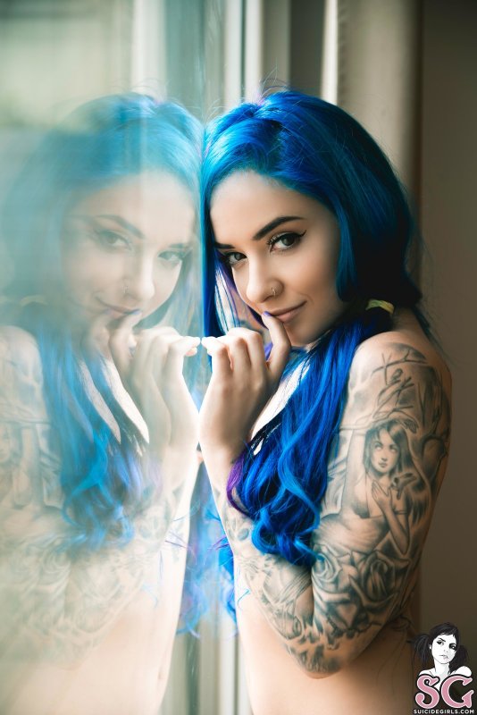 Эротика » Красивая эротика » Неформалка с синими волосами в неглиже