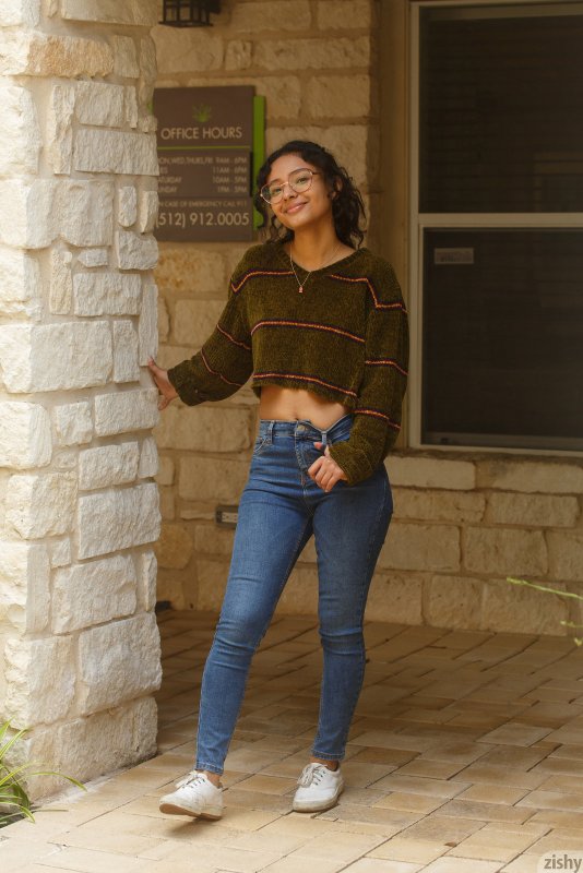 Прогулявшись на улице и вернувшись домой, весьма симпатичная молодая индуска в очках устраивается на диване и раздевается до трусов снимая с себя джинсы. Возбуждающе поднимая ноги и обхватывая их руками, сексуальная девушка акцентировала внимание на ляжках с попочкой, получая при этом желаемое наслаждение.