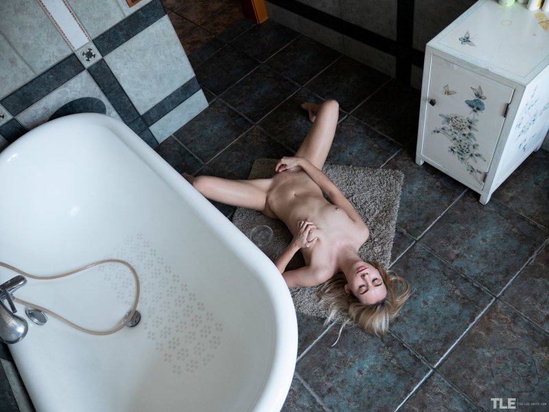 Закрывшись в ванной комнате с фотографом, сладкая блондинка с сексуальным телом вооружается кубиком льда и нежно ласкает им свою бритую письку, клитор и красивые соски, принимая для нас самые соблазнительные позы. Стоя раком на коврике, стройная девушка с маленькой грудью делала акцент на упругой попке, а переворачиваясь на спину она широко раздвигала промежность, что бы мы получше рассмотрели её прелести.