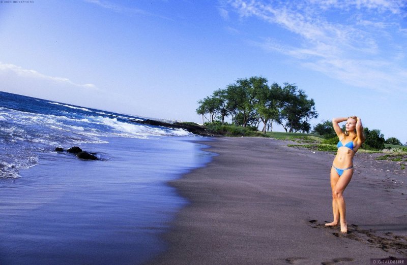 Обаятельная сногсшибательная блондинка с худенькой талией скидывает с себя купальник и голая шалит на пляже перед камерой, пачкая свою сладкую попку в песке. Испытывая возбуждение, сексуальная блондинка с маленькой грудью и торчащими сосочками порой нежно трогала бритую письку с прической на лобке.