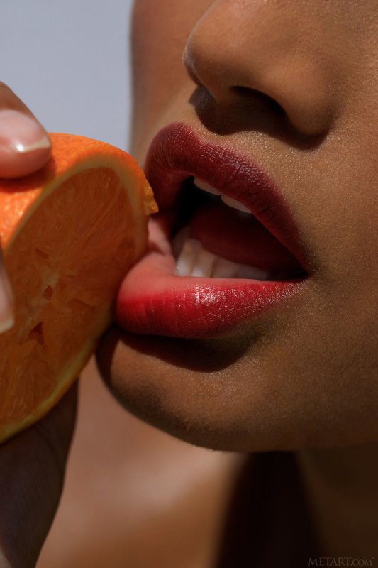 Эротика » Красивая эротика » Мулатка с красными губами обнажилась на стуле
