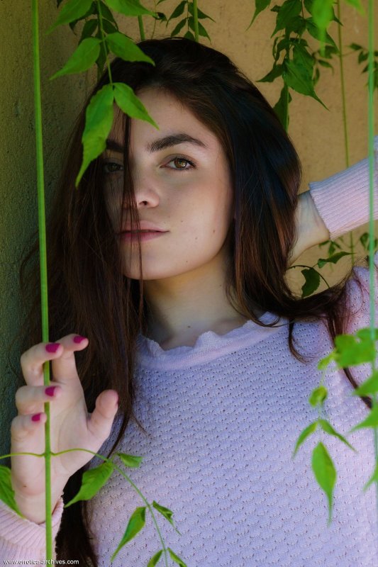 Наткнувшись на укромное местечко для откровенной съёмки, молодая брюнетка с длинными волосами эротично позирует в полосатых гольфах без трусов, стараясь поворачиваться к фотографу своей упругой попкой. Вскоре сексуальная девушка с маленькой грудью раздвинула ноги и так же похвасталась сочной киской с нежными губками.