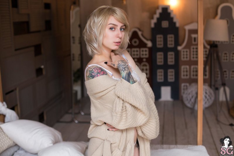 Эротика » Красивая эротика » Девка с татуировками в белом нижнем белье