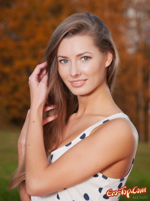 Соблазнительная девушка Elizabeth A. раздевается на полянке в осеннем лесу.Только девушка скинула платье, как в глаза нам бросилась её очень красивая грудь, просто великолепная - идеальной формы, внушительного размера и с красивенькими маленькими сосками коричневого цвета, набухшими от возбуждения. Пока красавица позирует, расположившись на покрывале расстеленном на зелёной травке, фотограф делает крупный план её титек - и этот кадр невообразимо потрясающий... Вот она - идеальная грудь планеты всей, встречайте и приветствуйте!!! Так же у девушки, кстати, очень симпатичная, ухоженная киса. стройная фигурка и смазливое личико. Пейзаж тоже отменный, на его фоне красотка смотрится особенно прекрасно.