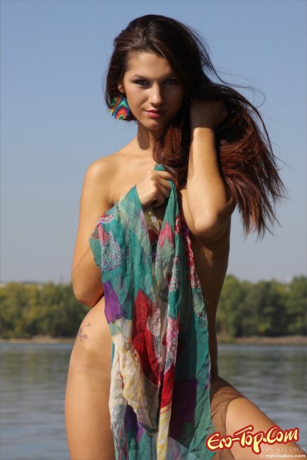 Молодая голая девушка с красивой грудью позирует на берегу озера. Очаровательная особа с густыми длинными волосами, смазливым личиком и потрясающей фигуркой смотрится очень сексуально и возбуждает с первых же фотографий. Её упругие титьки идеальной формы, подтянутые и выпирающие вперёд - просто невероятны, на них хочется смотреть очень долго, не отводя взгляда... Так же у красавицы заманчивая пися с небольшим пушком из лобковых волос, очень притягательная и располагающая к сладким, непристойным фантазиям...