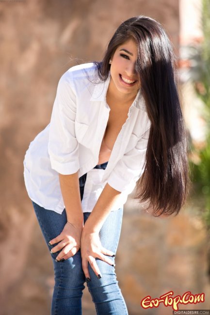 Сисястая мулатка и по совместительству первоклассная порно актриса Megan Salinas, раздевается ярким солнечным днём, перед объективом профессиональной фото камеры. Брюнетка снимает узкие джинсы, белую блузку и невероятно сексуальные белые трусики стринги, в которых её попка смотрелась изумительно, а уж без них и вовсе поражает своими практически идеальными формами, упругими и подтянутыми ягодицами. Но первым делом в глаза нам бросается огромная, пышная грудь девушки. Красотка Меган принимает самые соблазнительные и возбуждающие позы - особенно захватывает та, где девушка приспускает трусики, так что мы можем видеть её гладкую киску, и повернувшись к нам попой, наклоняется, как бы вставая раком - вид незабываемый...