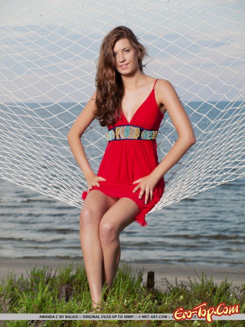 Соблазнительная голая девушка позирует в гамаке на берегу океана, пока её тело обдувает лёгкий бриз. Яркая, летняя фото сессия с симпатичной девчонкой, готовой показать свои прелести. Поначалу, однако, красавица была в красном платье, которое очень быстро оказалось снятым, а нашему вниманию предстало шикарное тело молодой девчонки с маленькой грудью, упругой, подтянутой с красивыми коричневыми сосками и аккуратными, маленькими ореолами вокруг них. Так же у брюнетки очень аппетитная попа со спортивными ягодицами, ну и конечно бритая, а вернее даже эпелированная киска с розовыми половыми губками - просто с ума можно сойти...