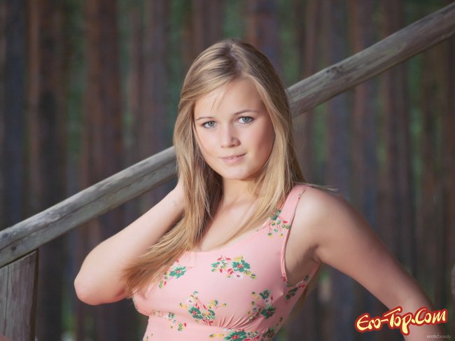 Юная аппетитная фотомодель Sandy C захотела попозировать в абсолютно обнаженном виде на фоне могучего соснового леса. Расположившись на крыльце домика лесника и сняв легкое платье, которое было одето на голое тело, милашка начала демонстрировать свои сладкие прелести. У девушки была небольшая грудь с набухшими сосочками и розовая бритая киска, которая так и не была запечатлена крупным планом. Сексуальная девушка на фоне красивой природы - воистину чарующее зрелище.