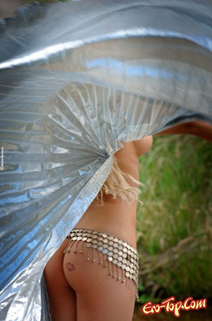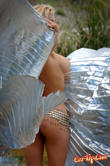 Очаровательная и ослепительная девушка одела на себя необычный костюм, который давал ей крылья. Красотка таким образом хотела нам продемонстрировать всю невесомость своего образа, в котором преобладает не только вызывающая сексуальность, но и чистота.