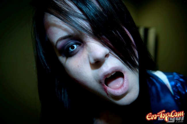 Немного страшновато становится когда смотришь на эту сексуальную девушку зомби. От ее злобного и голодного взгляда аж мурашки бегают по кожи. Но если не пугаться ее то девочка вполне красиво выглядит, ее стройные ножки в коротеньких шортиках очень возбуждают, а ее большие голые сиськи так и хочется помять руками.