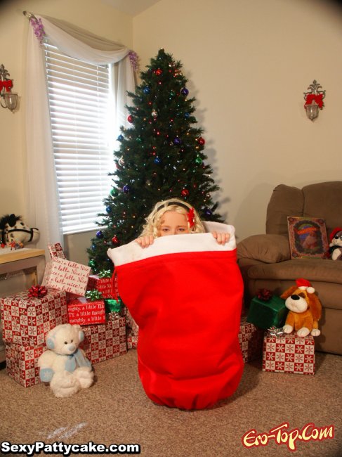 Я был бы рад получить на Новый Год от деда мороза подарок в виде симпатичной молодой блондинки в мешке под елкой. Милашка в школьной униформе выпрыгивает из мешка и начинает сексуально позировать. Детка сжимает через лифчик свои большие сиськи руками, потом задирает красное короткое платье в клеточку и демонстрирует свою гладенькую попочку белого цвета, на которой надеты прозрачные черные трусики.