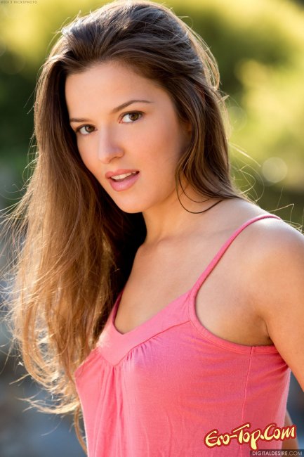 Красивая шатенка в розовой маячке и коротеньких шортиках сексуально смотрит своими карими глазками и улыбается. Через мгновения куколка оголяет свою маленькую упругую грудь с самыми красивыми сосками правильной круглой формы. Она даже показала одну сисю крупным планом. Затем детка медленно стягивает с себя шортики, под которыми белые трусики, немножко расставив ножки она ручкой начинает поглаживать себя по гладенькой киске.