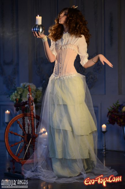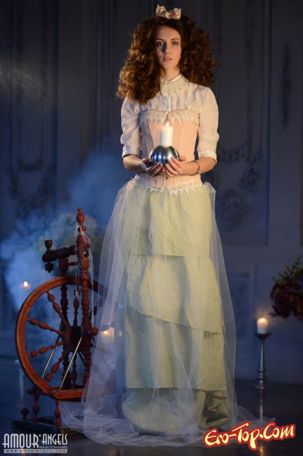 Симпатичная принцесса который день уже сидит на стуле в шикарном платье и ждет своего возлюбленного, который вернется с похода и как следует ее трахнет. Девочка с кучеряшками даже не надела трусиков, чтобы все случилось по быстрому. От возбуждения малышка начинает раздеваться, сперва она оголяет груди, а потом снимает платье и начинает сама себе мастурбировать руками.