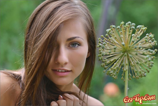 Миленькая голая девушка позирует в саду. Полностью обнаженная куколка демонстрирует своё гладкое загорелое тело. Девочка садится на бревно и раздвигает стройные ножки, чтобы показать свою писю. Потом куколка крупным планом показывает розовый клитор и аппетитную попку.
