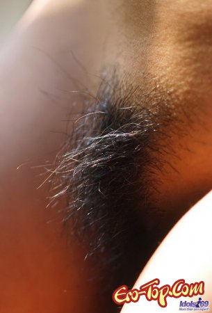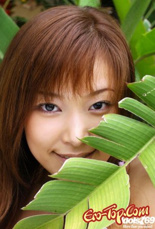 Милая азиатка с большой грудью и волосатой киской. Озорная девушка, на фоне зелёных листьев какого-то растения очень гармонично смотрится и вызывает не просто сексуальное желание, но и некоторое чувство близости и нежности.