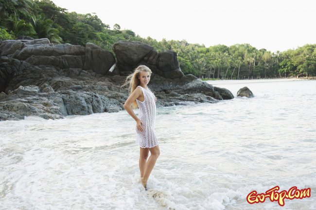Молодая симпатичная девушка, стройная блондинка Stella Lane позирует голая на диком пляже с белым песком. Красавица смотрится очень сексуально на фоне экзотического пейзажа и её фото доставляют массу эстетического удовольствия...