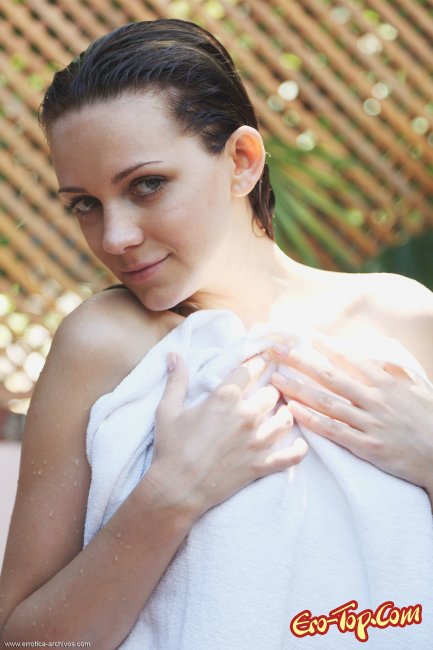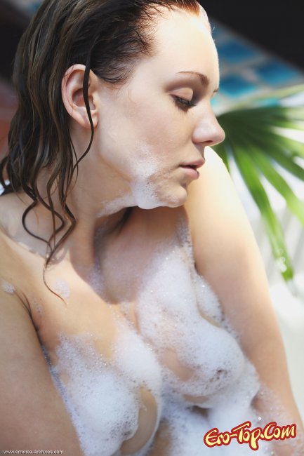Стройная девушка принимает горячую ванну, где расслабляется и попутно позирует перед фото камерой соблазняя зрителя своей упругой грудью и другими прелестями.