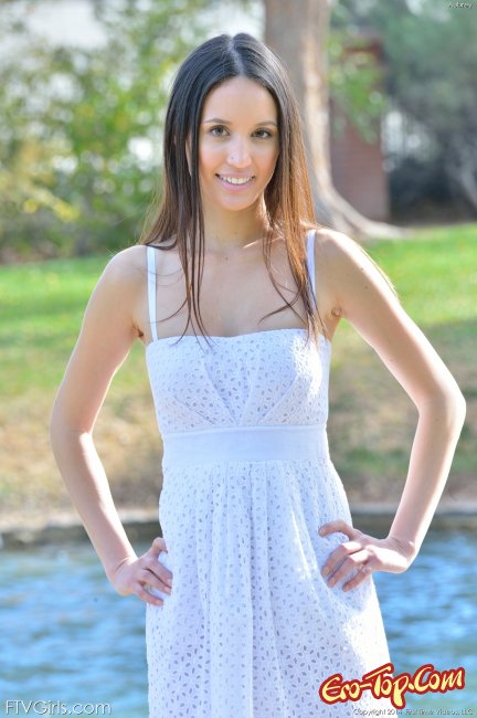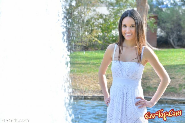 Очаровательная, милая девушка Aubrey прогуливалась по парку, где задрала подол своего лёгкого летнего платья. Она без лишней скромности продемонстрировала нам свои прелести, включая розовую киску, широко раздвинув ножки.