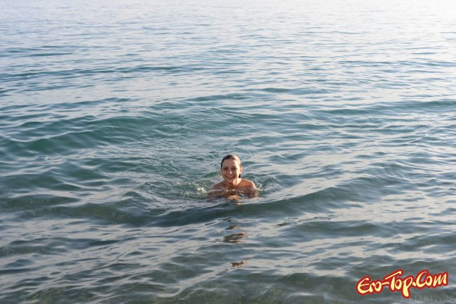 Сладкая девушка Foxy Di разделась и голая купается в море, не стесняясь при этом фото камеры. Прозрачная вода поглощает нежное тело девушки, а затем она выходит из неё и ложится на тёплый камень, подставляя в объектив камеры свою упругую попку.