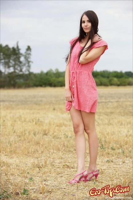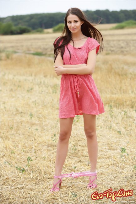 Приятная, стройная девушка Vanessa Skyпоявляется перед нами в поле, одетая в розовое платье. Вскоре девушка снимает трусики, а затем стягивает и платье оказываясь совсем голой посреди чистого поля. Красавица обладает потрясающим телом с пышной грудью и упругой попкой.