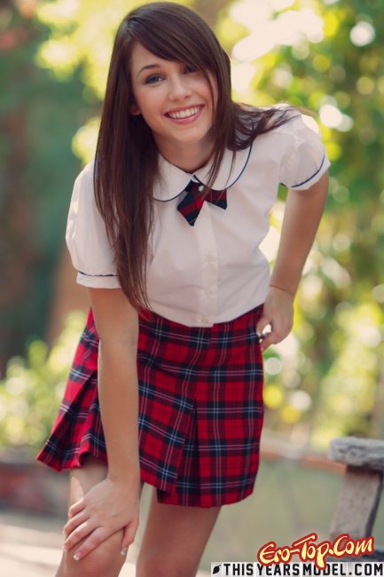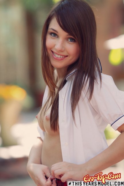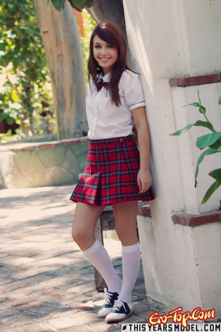 Соблазнительная девушка Marissa May появляется в белой блузке и красной юбочке, а под юбкой у неё белые трусики. Медленно красавица снимает с себя всю одежду и обнажает перед камерой своё приятное, возбуждающее тело.