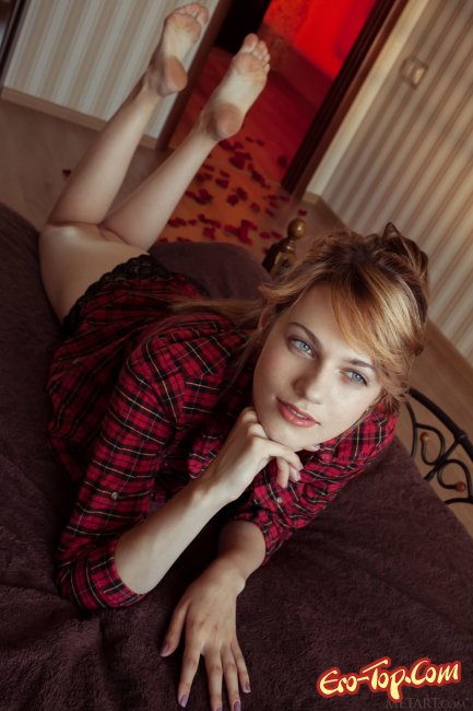 Эротика » Красивая эротика » Рыжая девушка снимает трусики