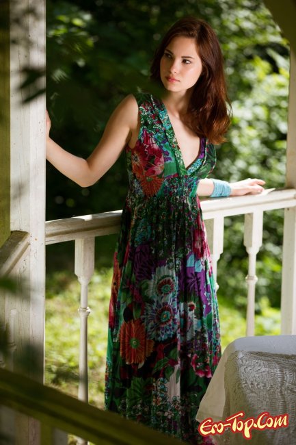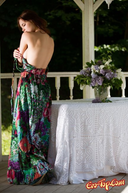 Приятная, соблазнительная девушка с красивым лицом, появляется перед нами на веранде в красивом платье. Постепенно девушка раздевается и остаётся голая, открывая своё восхитительное тело с пышной грудью.
