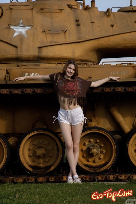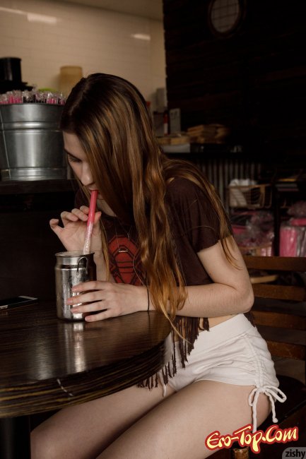 Эротика » Эротические модели » Худенькая девушка в коротких шортах показала грудь