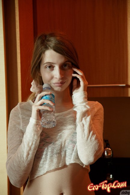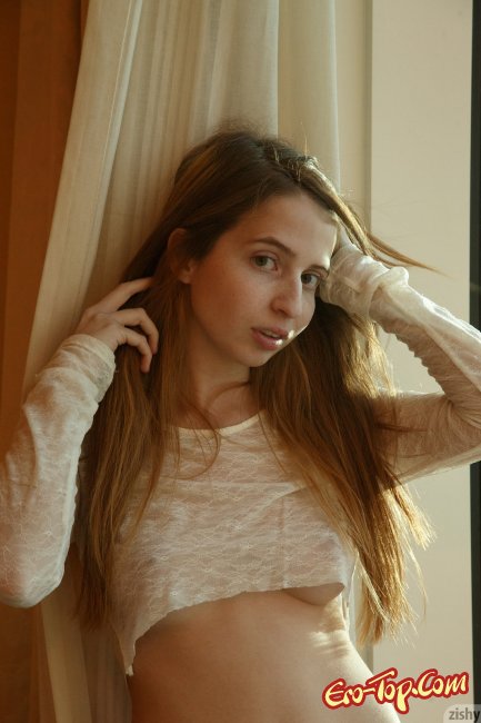 Прогуливаясь полуголой в доме скромная девушка стягивает кофточку и начинает максимально эротично позировать в розовых трусиках, в будущем располагаясь на кровати и выставляя на показ попочку, лежа на спинке. В процессе молоденькая крошка старается страстно сжимать натуральные сиськи руками и прикрывать пальчиками сосочки.