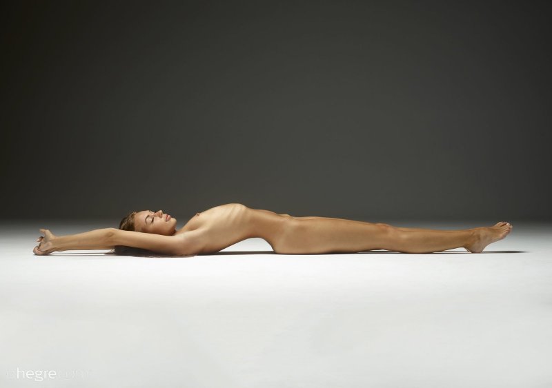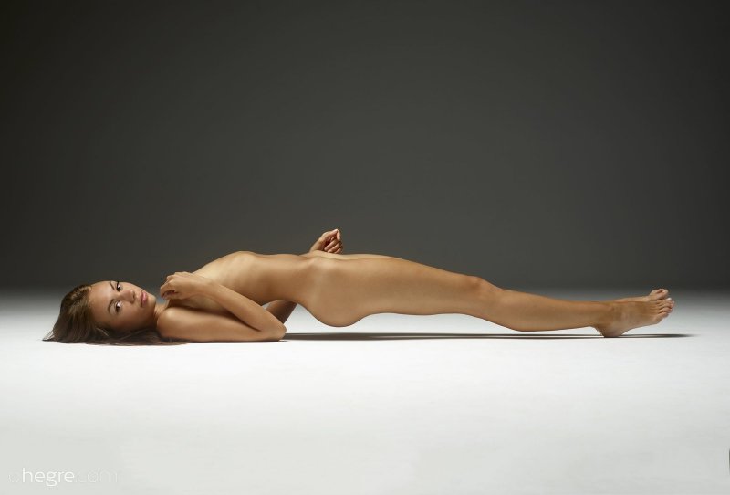 Располагаясь на полу, голая и достаточно худенькая модель с сексуальным телом и длинными ногами кувыркается в разных позициях и засвечивает самые возбуждающие части. Лежа на спинке, молоденькая крошка с маленькими сиськами и пирсингом в сосках берется нежно ласкать бритую письку пальчиками и закрывать глазки от удовольствия.