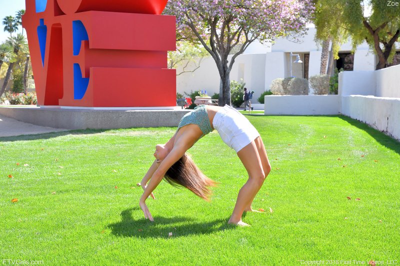Мило улыбаясь во все тридцать два зуба, молоденькая девица в коротенькой юбке начинает эротично позировать на улице, в процессе меняя позиции и места, засвечивая белые трусики и гладко выбритую письку. В будущем очаровательная крошка низенького роста даже прогибалась раком и становилась на мостик, прогибая спинку.