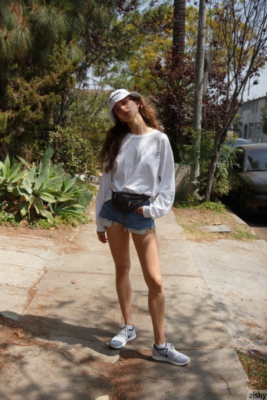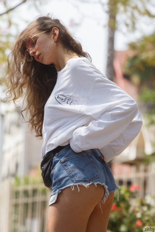 Подышав свежим воздухом на улице и вернувшись домой, очаровательная развратная девушка сменила коротенькие шортики на возбуждающий боди и начала позировать полуголая. В процессе молоденькая крошка закрывалась в ванной комнате и прогнувшись раком выставила на показ сочную подкаченную попку, а так же показала нам свои натуральные сиськи.