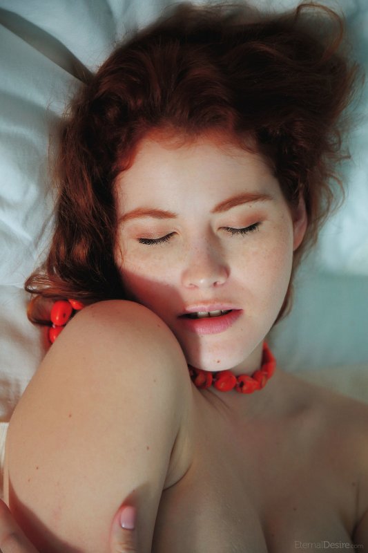 Эротика » Эротические модели » Рыжая голая девушка выставила попочку на кровати