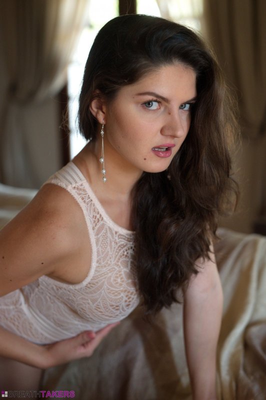 Обворожительная и достаточно сексуальная девушка, устроившись на диване, стоя на коленках, начинает возбуждающе открывать ротик и медленно раздеваться. В будущем она все же оголяется и подробно демонстрирует натуральные висячие сиськи и бритую письку, параллельно грациозно поднимая руки вверх.