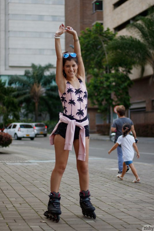 Эротика » Эротические модели » Девушка в шортах на роликах позирует на улице
