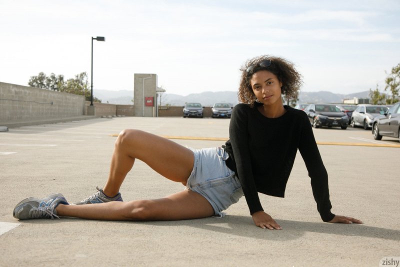 Надев кофту и короткие шорты, молодая негритянка с милой внешностью и стройной фигурой гуляет на улице с профессиональным фотографом. Часто меняя ракурсы перед его камерой, а порой широко раздвигая ноги, чернокожая девушка раскрывала свою промежность. В которой отчётливо виднелась коричневая писька, спрятанная за джинсовой тканью шорт.