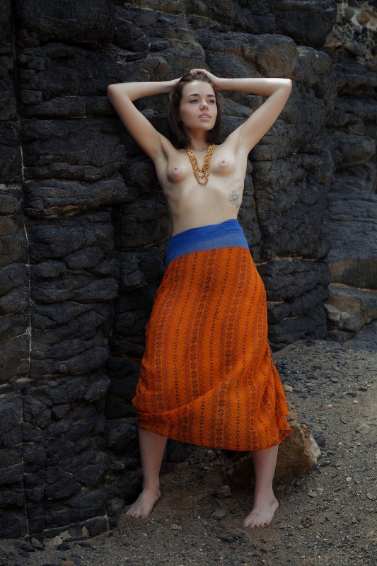 Медленно раздевшись до гола, игривая милашка с волосатым лобком и маленькими сиськами начала эротично позировать у скалы. Часто меняя разные ракурсы, сексуальная девушка совсем не постеснялась подробно демонстрировать волосатую письку с заросшим лобком и прочие прелести худощавого тела.