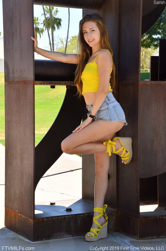 Нарядившись в короткие джинсовые шорты и майку, длинноногая девушка с милой внешностью начинает эротично гулять на улице. Наслаждаясь летним днем, сексуальная молодая стройняшка в будущем все же продемонстрировала маленькие торчащие сиськи, для этого расположившись на газоне.