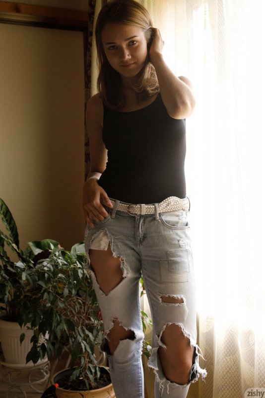Эротика » Эротические модели » Молодая девка в рваных джинсах