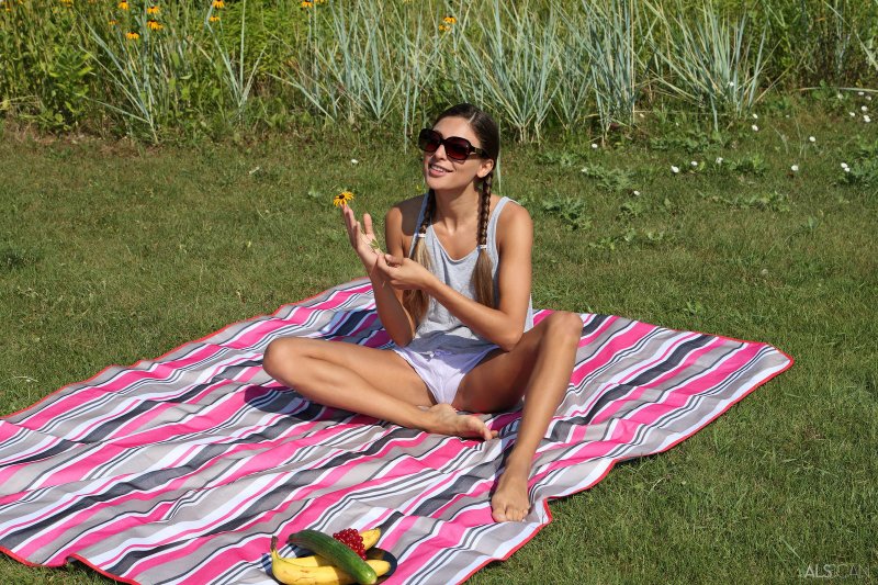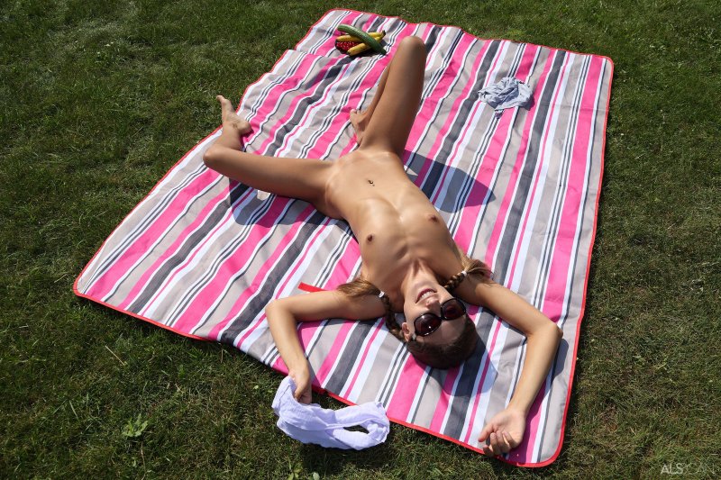 Обаятельная худышка с милой улыбкой и плоскими сиськами, находясь на природе и располагаясь на подстилке, медленно раздевается догола и чередует разные ракурсы. Обнаженной стройная девушка подробно засвечивала бритую письку и гладкий лобок, ощущая при этом желаемое удовольствие.