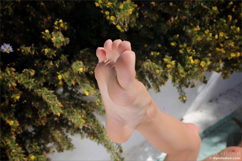 Прогуливаясь на улице, за городом, милая молодая девица в какой-то момент эротично позирует и располагаясь на подстилке медленно снимает с себя белые трусики и топик. Оставшись же обнаженной, прекрасная особа с маленькой грудью не стесняясь своей наготы показывает нам бритую письку и упругую задницу, особенно часто прогибаясь раком.