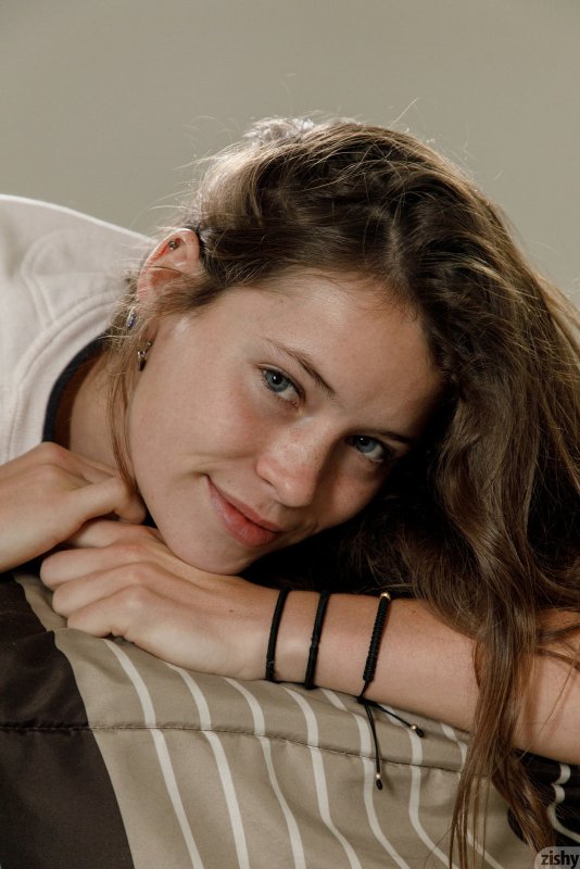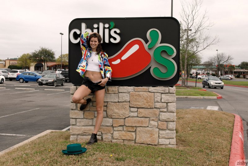 Молоденькая и довольно симпатичная девушка с каштановыми волосами, надев короткие шорты и майку без лифчика, прогуливается на улице и мило улыбается нам через объектив фотоаппарата, скромно засвечивая виднеющиеся через одежду маленькие сиськи. В дальнейшем, стройная красавица возвращается домой, где переодевшись акцентирует внимание на аккуратной упругой попе и ляжках.