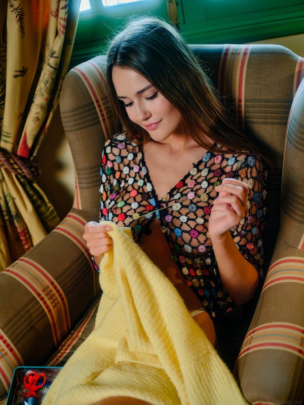 Эротика » Эротические модели » Возбужденная тёлочка ласкает себя в кресле