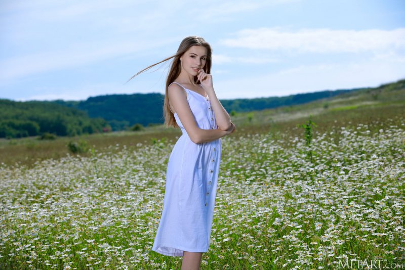 Игриво оголив перед камерой свою аппетитную упругую попочку, нежная красавица без трусиков медленно снимает платье и, хорошенько похваставшись где-то в поле своим стройным гибким телом, возбуждающе раскрывает между длинными ножками свою бритую пизду с сочными розовыми губами.