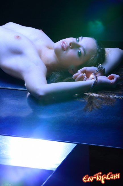 Молоденькая симпатичная девушка позирует совершенно голенькой на столе в наручниках. В мрачной обстановке при свете фонаря куколка пытается освободить запястья, но все без толку. Девочка с длинными волосами и маленькими розовыми сосками принимая сексуальные позы грызет цепи зубами. Потом голубоглазая телка с волосатым лобком смерилась с тем, что ей не освободится.