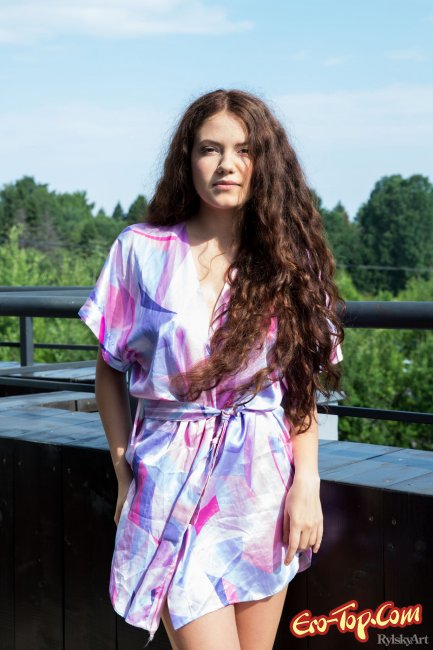 Молодая и очень соблазнительная девушка с длинными волосами красиво позирует на эротическом фото. Девочка скидывает с себя халатик и красуется своими большими белыми сиськами. Малышка садится на стульчик и высоко задрав ножки вверх, показывает крупным планом свою гладко выбритую киску, а потом и округлую задницу.